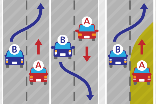 ¥ãçŽé²ããããšããèªè»¢è»ãè¡çªããå Žåã«ã¯ãé倱å²åã¯ãèªåè»ã7ãèªè»¢è»ã3ã«ãªããŸãã