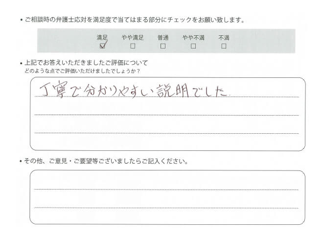- 解り易い説明をていねいにして下さり、非常に親身になって相談を聞いて下さいました。