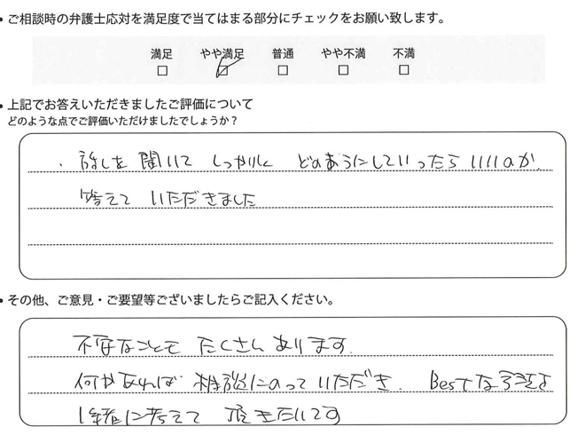 色々話を聞いていただけたので評価を「満足」とさせていただきました。